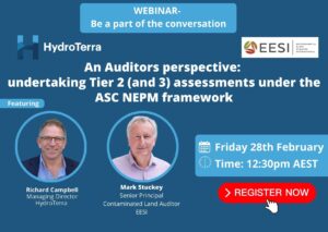 Senior Principal Scientist, Hydrogeologist, and Risk Assessor from EESI is joining Richard Campbell for an exclusive Webinar on how to approach contaminated land assessments more strategically and expand your knowledge of the ASC NEPM framework.