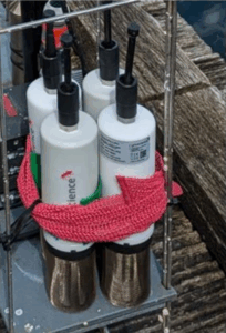 - Four AquapHOx pH and oxygen loggers after the deployment in Kiel Fjord, Germany